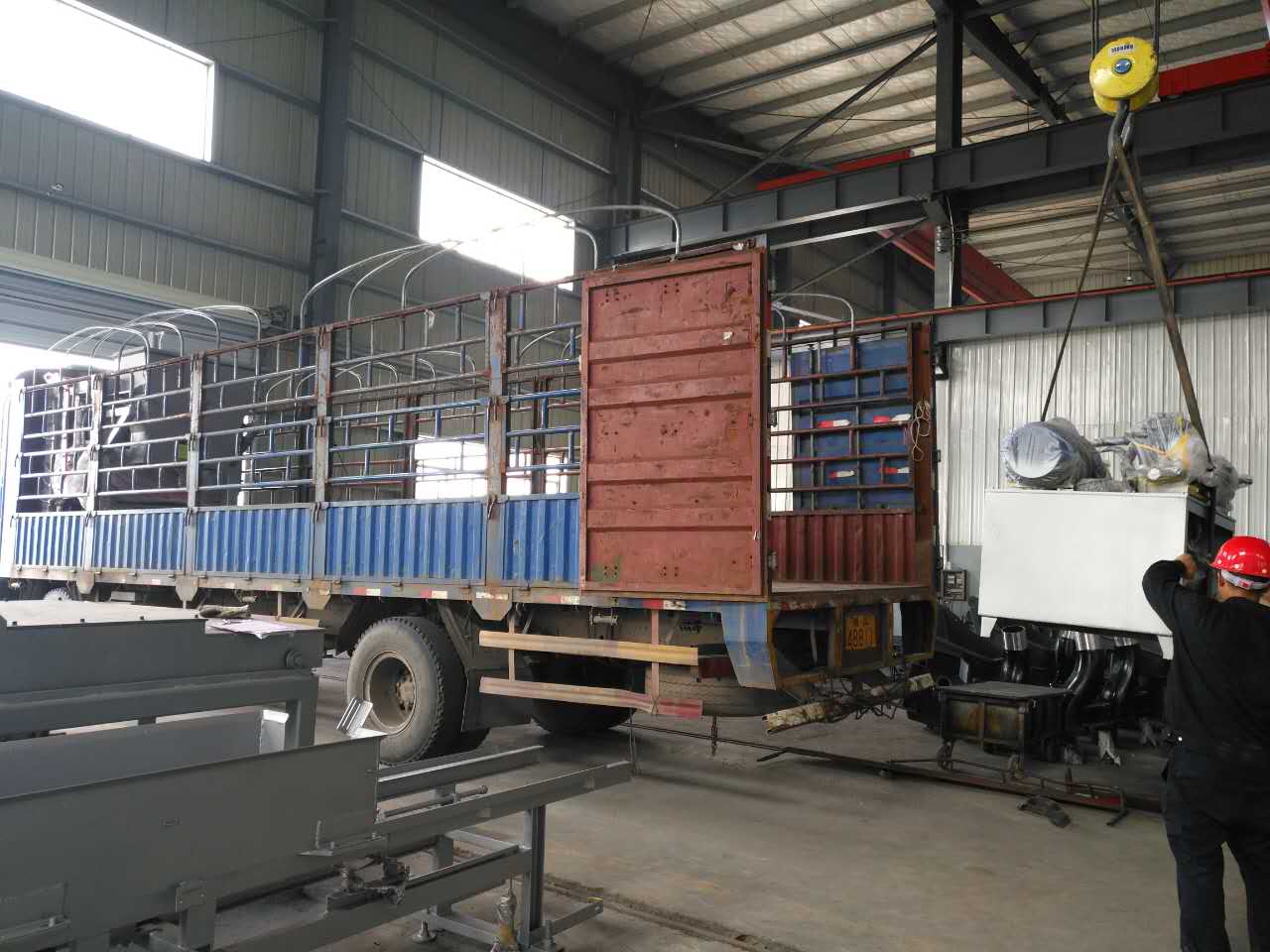 今天一臺全自動砌塊成型機五型機整裝發(fā)貨